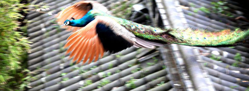 孔雀于飞,翙翙其羽,高瓴鸣矣,雍雍喈喈,亦傅于天,昭示吉祥。