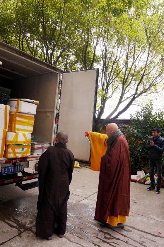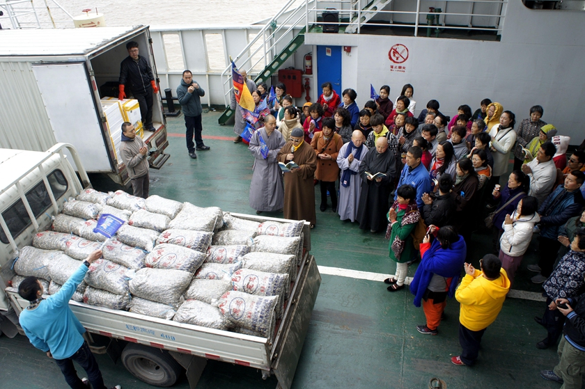 果义法师以清凉甘露遍洒鸟雀水族,愿它们断十二因缘,离畜生身,当下离苦得乐,超越三界。