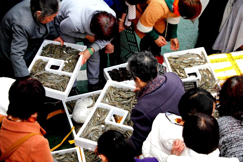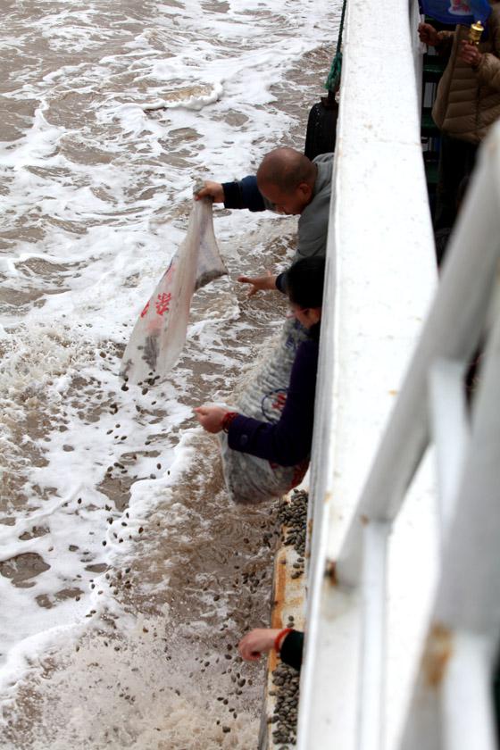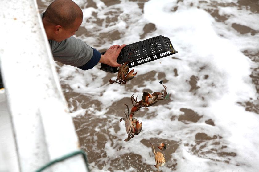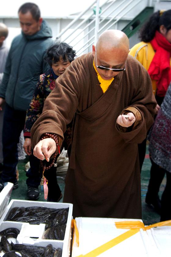驱车赶往码头,黛云低垂,海风清凉。登海轮而上,贝类成堆,鱼虾满箱,皆我过去父母,思之不由悲心充满,虔诚念佛。
