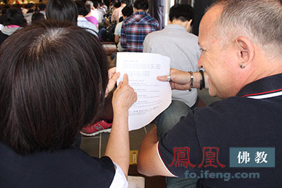 法鼓山皈依典礼,也提供外国人士英语同步翻译。(图片来源:凤凰佛教)