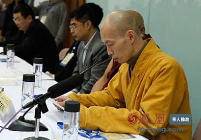 中华文化促进会佛教中心副主仼、文促会佛教中心禅林学社总干事长明贤法师。(图片来源:凤凰佛教)