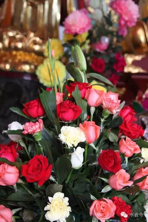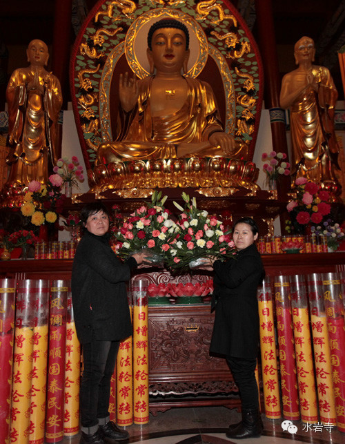 供花地点:大雄宝殿、戒坛、法堂、讲堂、丈室、关房大斋堂、小斋堂、大殿前的草花、绿植等