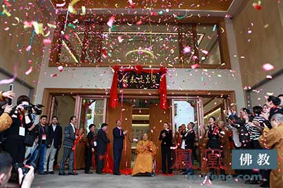 上海星云文教馆揭牌典礼,佛光山开山星云大师亲自出席,并与贵宾剪彩。(图片来源:凤凰佛教 摄影:人间社)