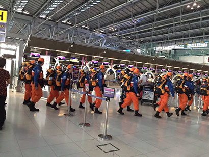 根据泰国慈济志工传来最新照片显示,在泰国机场看到日本救援队,他们的情况也是27日出发后,凌晨两点又回到曼谷。