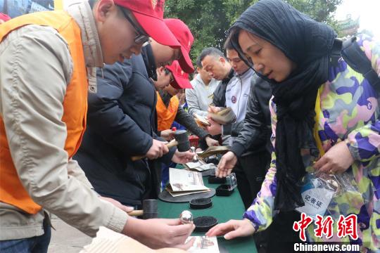 图为游客在禅行中加盖吉祥印章何蒋勇摄