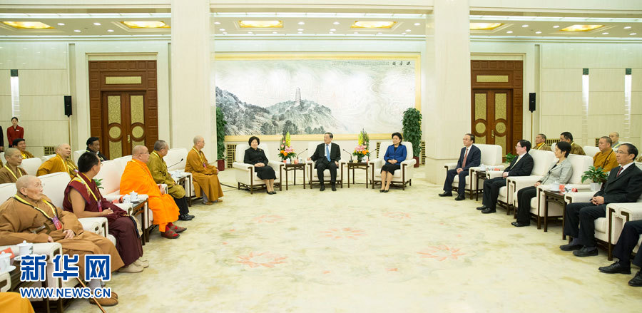 俞正声会见中国佛教协会新一届领导班子成员。新华社记者 黄敬文 摄