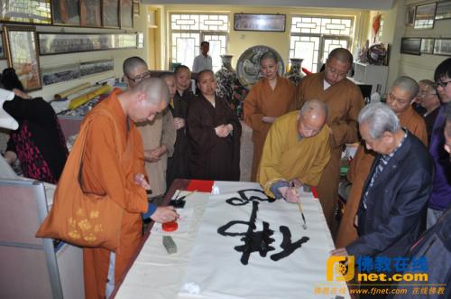 2015年4月22日,美国旧金山佛山寺智海长老来到天津荐福观音寺参访,受到住持妙贤法师及常住大众的热情接待,长老为大众开示并题写了墨宝,大家法喜充满。