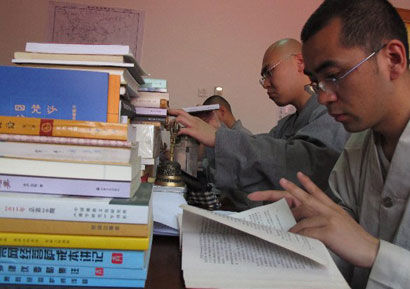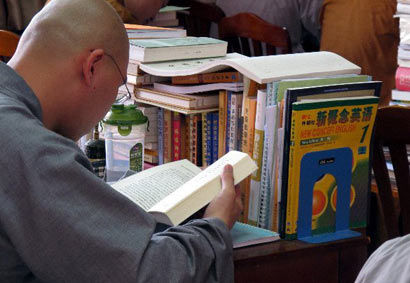 书可以说是学僧们最大的花销,如今,每位学僧一个月有100多元的补助,平时的法事活动,还会有一些收入,学僧生活简单,日常生活开销很少,大家都把大部分的钱用来买书了。学僧们的课余也有自己不同的喜好,2009届班长合文师父说,有的人利用周末学古琴,有的学茶道,有的逛书店,有的泡图书馆,大家的学习兴趣很广泛。