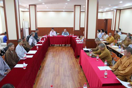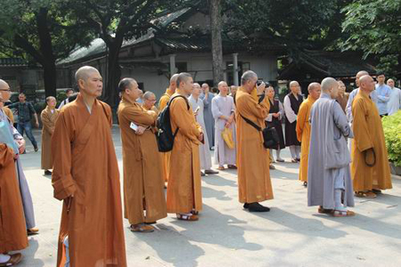 2015年4月17日上午,广东省广州市佛教协会组团到六榕寺、光孝寺、基督教锡安堂参观,最后来到佛教协会三楼会议室进行交流小结。目的是现场听取以上三个单位在创建“干净、整洁、平安、有序”活动中的成功经验,以便各寺庵后续在文明敬香与消防安保等方面,更好借鉴成功经验,从而在新常态下开展创新管理与服务工作。