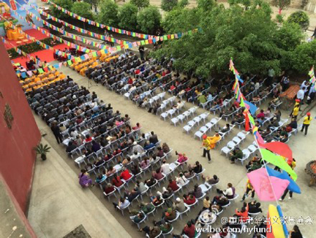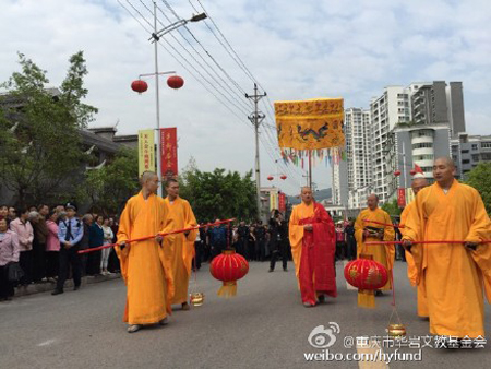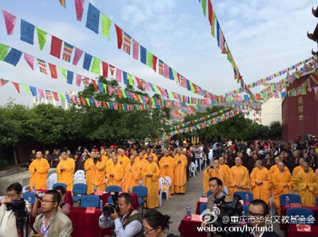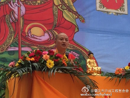 2015年4月21日上午9点,重庆华岩寺方丈道坚法师赴丰都延生禅寺举办《丰都鬼城与地藏信仰》讲座。来自四方佛子,十方善信数千人参加此次法会。寺院内彩旗飘飘,熏香缭绕。两序大众仪仗庄严,八方护法香花迎请法师。法会庄严、梵呗悠扬,信众齐聚恭听道坚法师讲经说法。