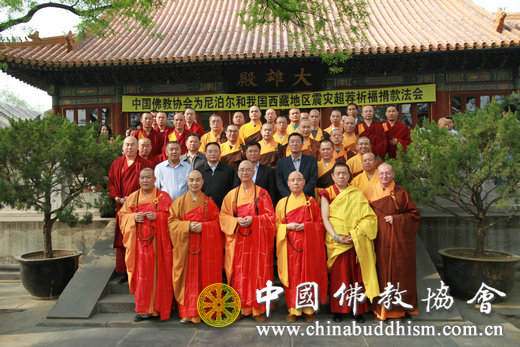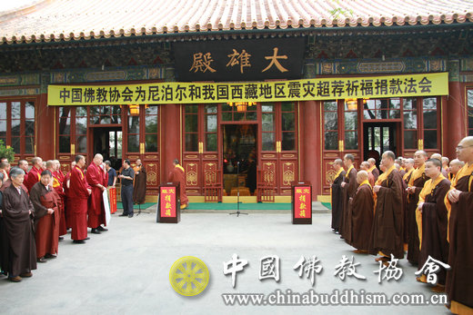 2015年4月27日下午,“中国佛教协会为尼泊尔和我国西藏地区震灾超荐祈福捐款法会”在北京广济寺举行