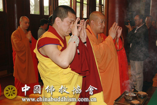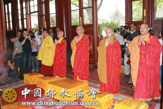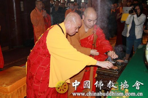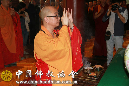 中国佛教协会会长学诚法师,驻会副会长演觉法师、宗性法师,副会长胡雪峰喇嘛,副秘书长常藏法师拈香主法