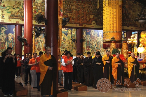 凌晨5点整,弘法寺钟鼓齐鸣,香烟缭绕,法会庄严肃穆。印顺大和尚率众法师及居士一起诵经祈福,为伤亡者祈祷,为生者祈福!祈愿佛力加被,助逝者早登极乐,也为受灾群众祈福,祈愿灾难早息,百姓早日重建家园。