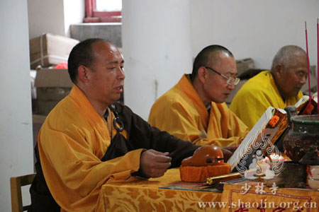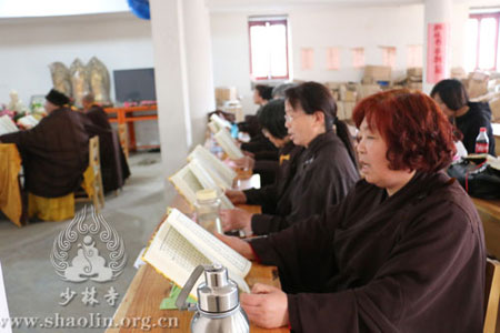 2015年4月11日下午13点30分,在少林寺下院——许昌龙化寺监院延群法师的带领下,寺院僧众在经堂内齐诵《大般若经》,梵呗清脆悦耳,给人以涤荡心扉之感。