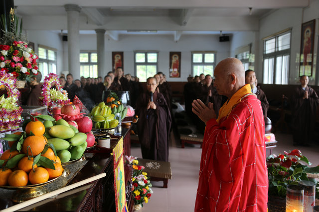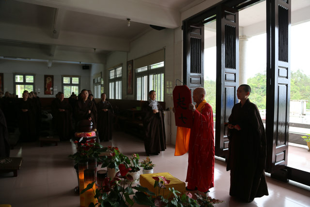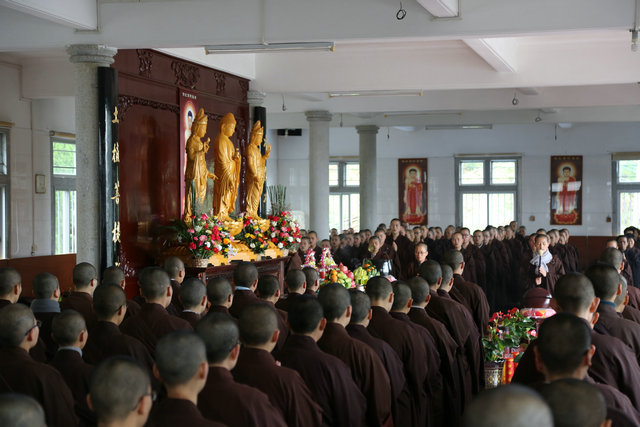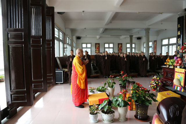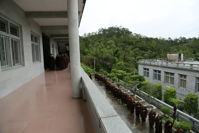2015年4月10日(农历二月二十二),广东陆丰清云山定光禅寺、广东尼众佛学院举行佛七共修法会。 为使道场清净、佛七殊胜圆满,下午三时三十分,举行起七洒净仪式。是时,广东陆丰清云山定光禅寺常住师父、广东尼众佛学院全体师生,携部份护法居士,身著海青,齐聚定光禅寺念佛堂,恭敬侧立,礼请定光禅寺方丈达仪大和尚为佛七“起七”主法。维那师起腔《杨枝净水赞》,梵呗声起,达仪大和尚拈香礼佛,朗声诵:“菩萨柳头甘露水,能令一滴遍十方,腥膻垢秽尽蠲除,令此坛场悉清净。”起七净坛后,参加佛七的诸位师父开始经行念佛。 广东陆丰清云山定光禅寺、广东尼众佛学院为期七天的佛七共修法会正式开始。 |