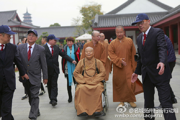 星云大师1927年出生在扬州江都,今年89岁,他12岁于南京礼志开上人出家,1949年去台湾,主编《人生》、《觉世》等刊物。在台湾创建佛光山,于1991年成立“国际佛光会”,被推为总会会长。(文:崔佳明 图:新浪微博)