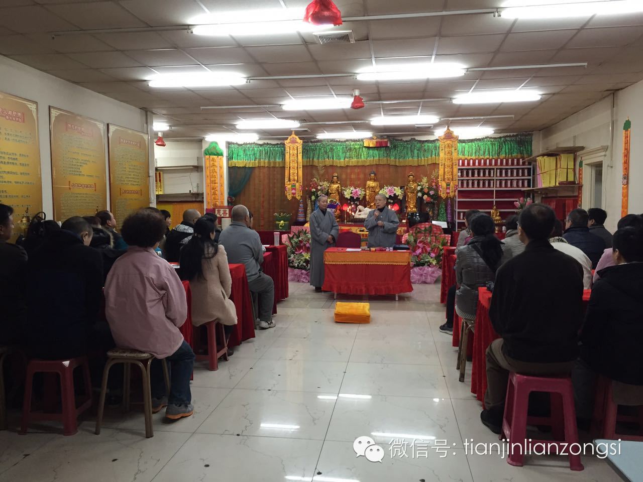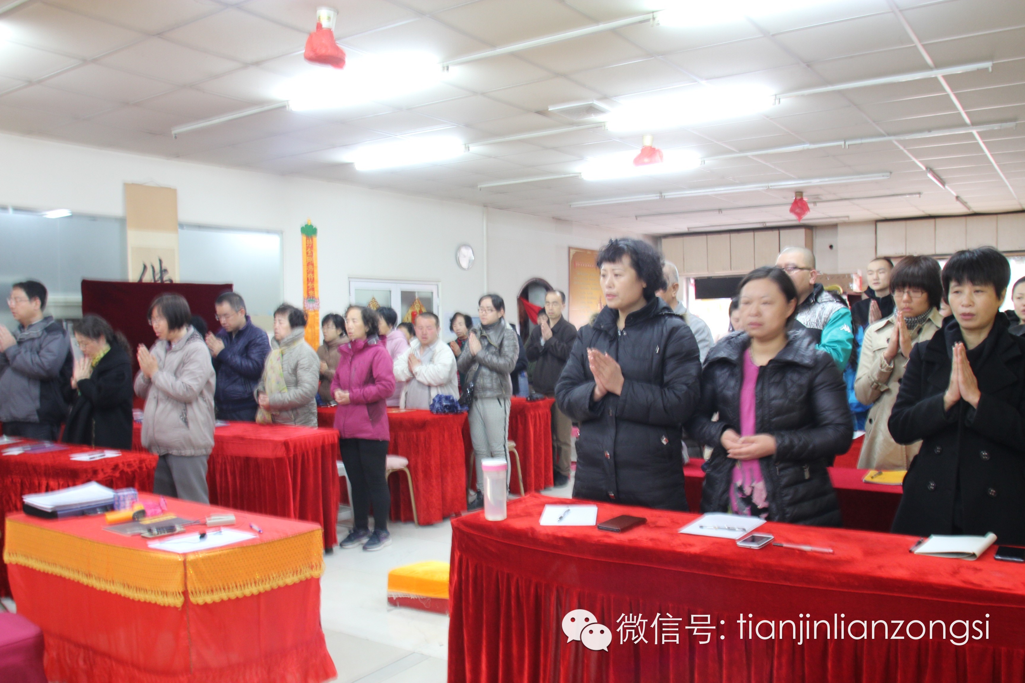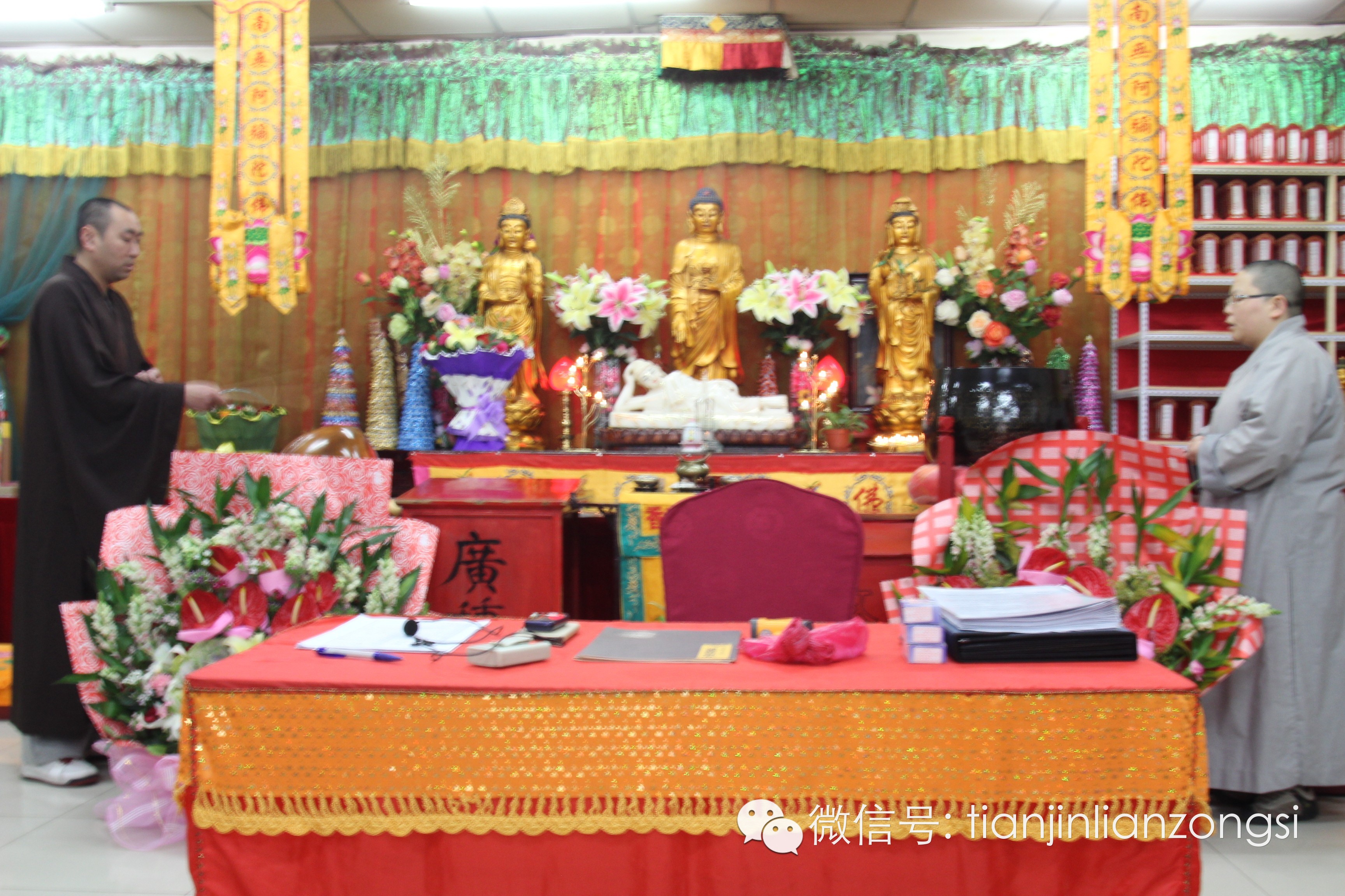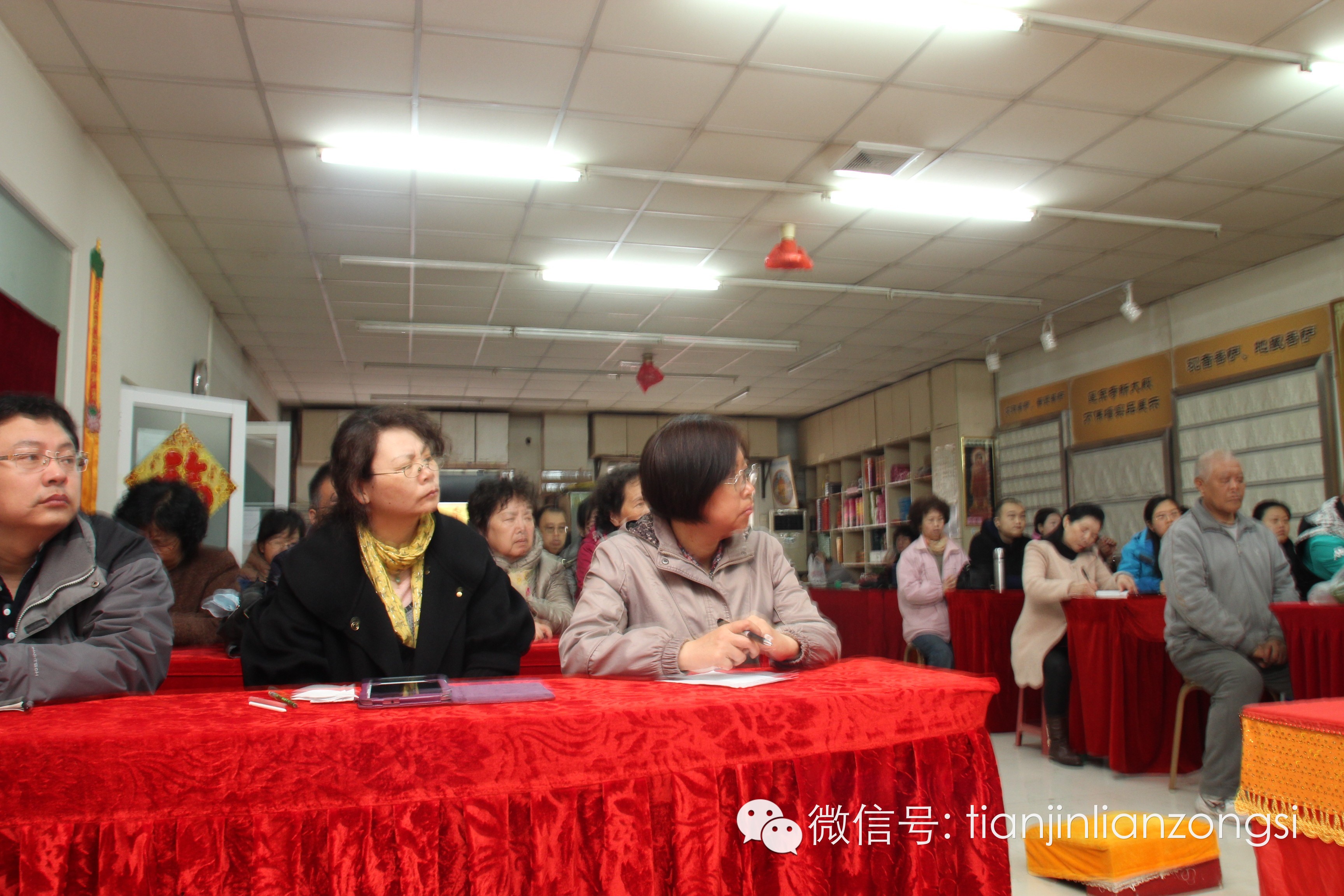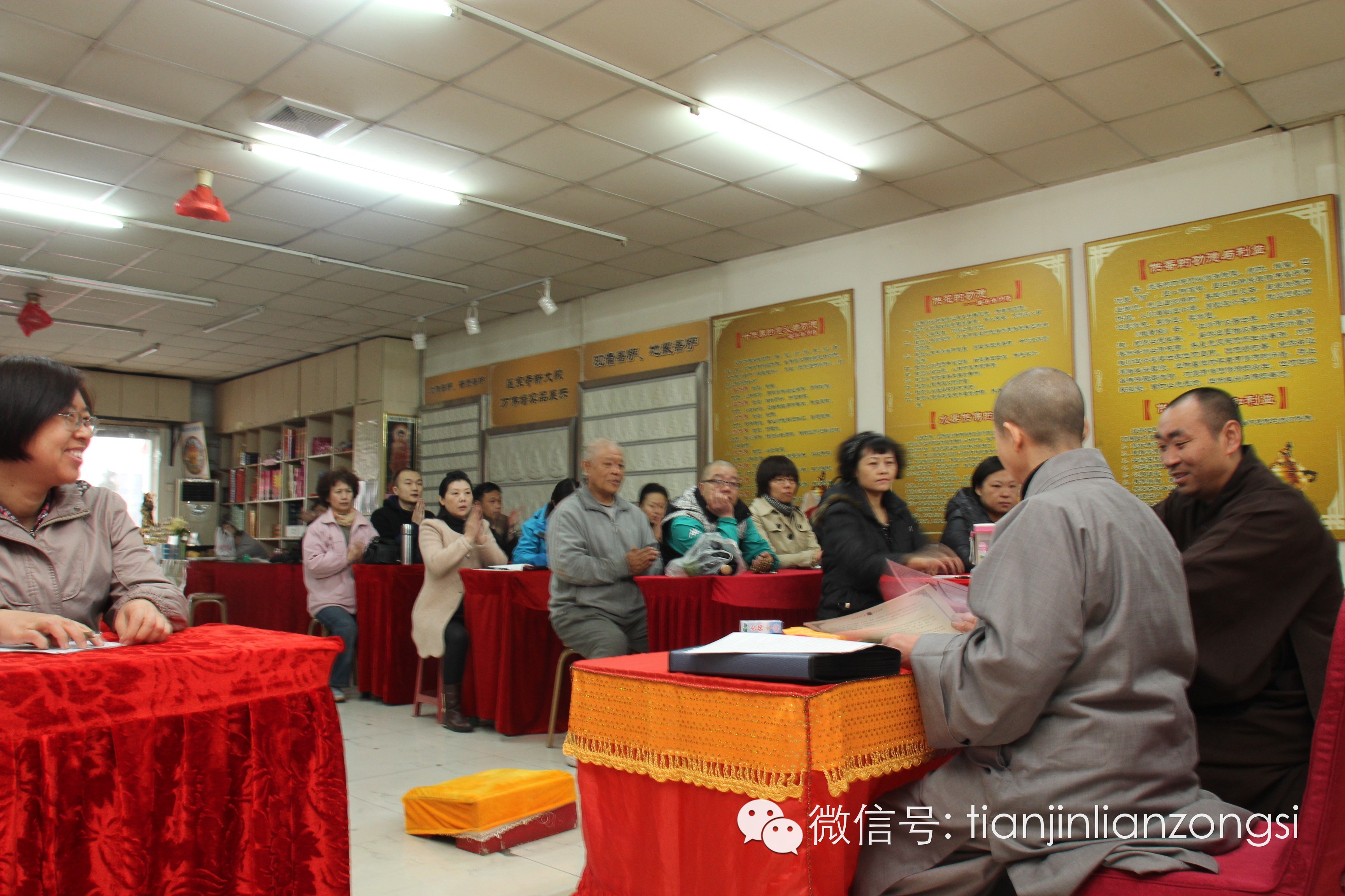 2015年4月12日,天津莲宗寺临终关怀助念团进行了第二次集体培训,有近40人参加。虽然阴天下雨,道路湿滑,但是大家都早早来到道场彼此交流佛法,畅谈助念心得。