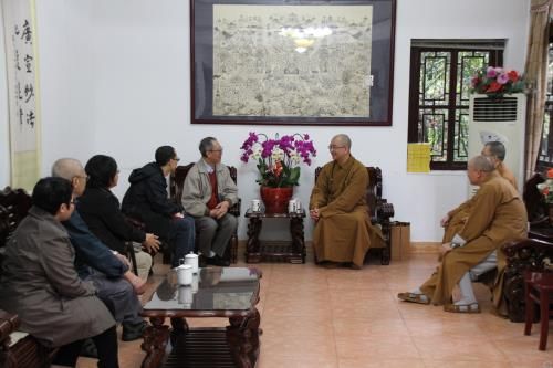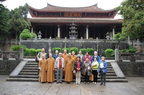 座谈结束后,福建佛学院院长学诚法师会见了李润生先生一行,并与李润生先生亲切交谈。最后,大家一起在大雄宝殿前合影留念。