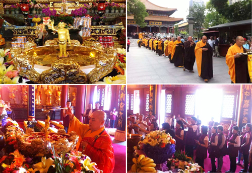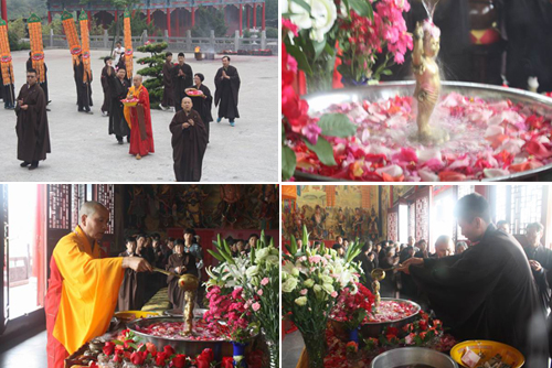 2015年5月25日(农历四月初八)浴佛节,为纪念释迦牟尼佛诞辰,陕西省各地寺院纷纷举办了浴佛祈福法会,来自当地周边的信众们带着对佛祖的崇高礼敬前往各处寺院同度浴佛法会,共沐法恩。