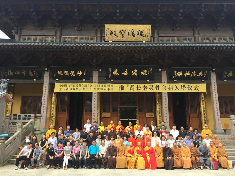 出席研讨会的嘉宾有宁波市佛教协会顾问、天童寺首座85岁修祥长老,普陀山法雨寺首座82岁雪桥长老,重庆市佛教协会副会长、千佛寺住持常慧法师,重庆缙云寺住持妙慧法师,重庆涂山寺监院海果法师,还有惟老皈依弟子陈正伟、庞国婉居士等,以及来自北京、上海、贵州、杭州的大德居士。大家纷纷表示,惟贤长老一生贡献卓越,在教俗两界都影响巨大,我们今天相聚伏龙山是一个良好的开端,今后全国各地对惟老学识的研究必将如火如荼地展开。会后,大家于琉璃宝殿前欢喜合影留念,