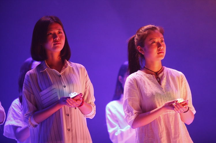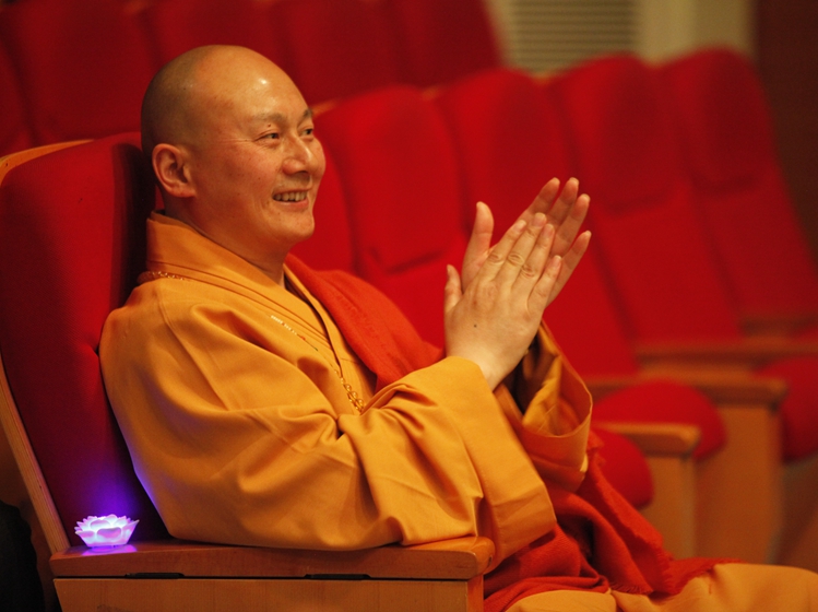 表演结束后,传喜法师上台致辞:大学之道,在明明德,这个“明德”就是来或不来,就在这里的,如同大地、海洋、蒙山、沂水,还有我们的心,就在这里。我们拥有很多,比如爱、阳光、雨露、空气,可是我们却不知道。每一个人,无论生命多长,都在永远的佛光的照耀下成长。我们流逝的生命不在旧照片上,因为爱和光明就在那里,从来没有离开,没有送别。愿我们每个人,都发现不来不去的幸福。