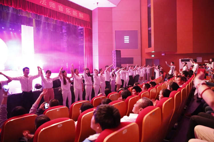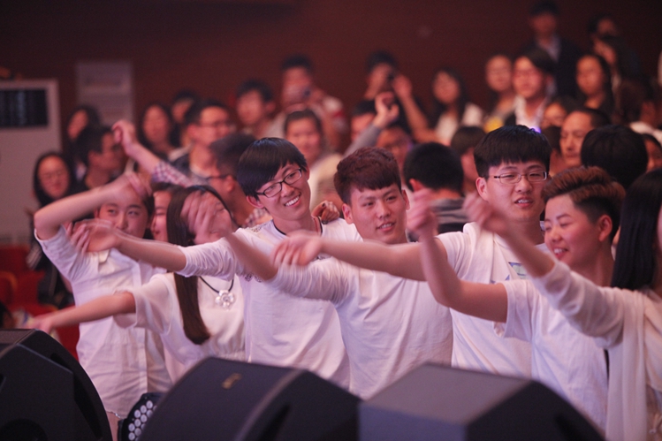在表达了对老师和朋友的感恩之后,一百多位临沂大学的学生在音乐会现场舞动,互相祝愿“幸福、满足、没有痛苦,以及快乐地相处”。