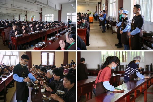 为了佛事的顺利开展,义工们慈悲喜舍、乐于奉献,涌现了很多感人的事迹。虽天气较热,但在户外的值勤者仍顶着炎炎烈日,恪尽职守;斋堂的义工们为让大家吃好饭,毫无保留地将饭菜施与大众,自己吃剩下的咸菜馒头……如此种种,其心可嘉,难能可贵,为此次殊胜的佛七增添了不少亮点。