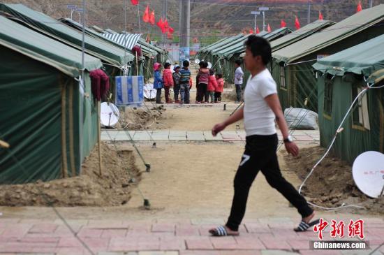 5月25日,尼泊尔8.1级强震整1个月,受灾严重的中国西藏已开始走出震后的紧张氛围和悲伤情绪。图为孩子们正在安置点内玩耍。中新社发 唐朝杨 摄