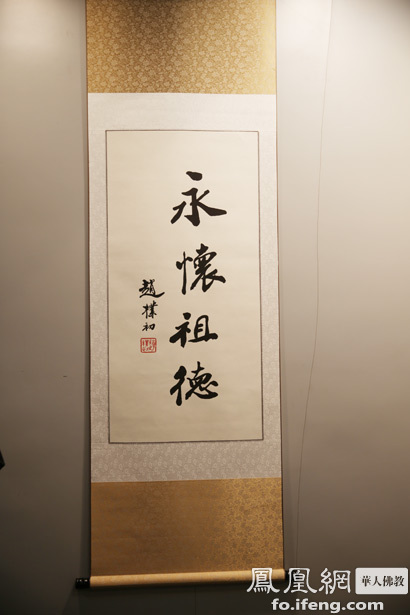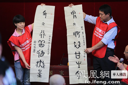 与会者展示怀念赵朴初先生的书法作品(图片来源:凤凰佛教 摄影:张玺)