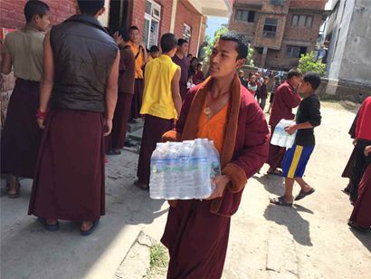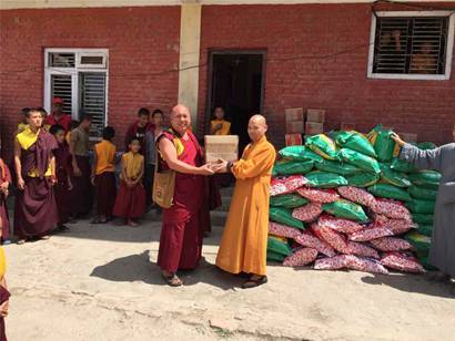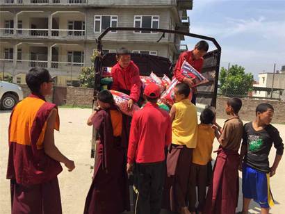 2015年5月5日,尼泊尔“4·25”大地震发生后的第十天,弘法寺、中华寺救灾队伍持续开展赈灾活动,依然在抗震救灾第一线上努力着,贡献着每一份力量。救灾队伍上午前往孤儿院siddhartha foundation看望孩子们并带去赈灾物资。下午前往Amarapur Buddhist Learning Center Amarapur Monastery附近重灾区,送去赈灾物资,展开赈灾工作。