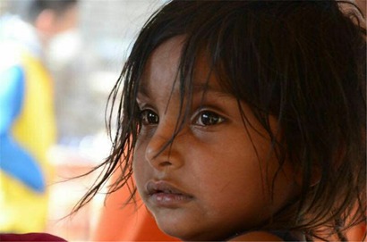 孤儿院里,头发凌乱的小女孩,眼中充满渴望