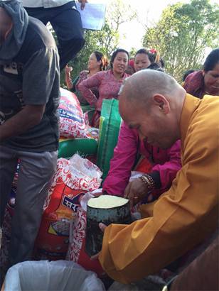 弘法寺监院智空法师为灾民分发大米