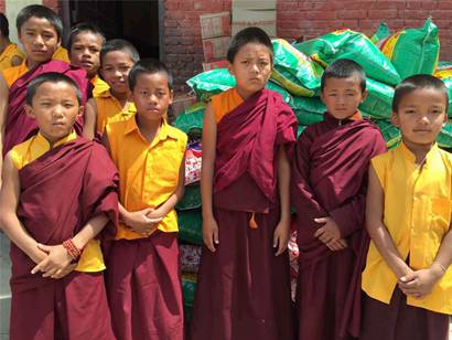 早上8:30,由弘法寺监院智空法师、中华寺合源师父带领的救灾队伍从驻点出发,准备好物资,前往孤儿院,看望孤儿院里的孩子们。据了解,该孤儿院目前有180多名孤儿,在尼泊尔“4·25”大地震中受损较小,无人员伤亡,一切平安。此次队伍为孤儿院共送去大米2吨、矿泉水50箱、方便面150箱。孩子们非常欢喜地迎接队伍的到来,积极主动的和队员们一起将物资从车上搬运下来并放好。孩子们和队员一起劳动、搬运物资,大家脸上都带着笑意。智空法师作为代表向孤儿院赠送物资,最后队伍和孩子们在物资前合影留念。此次救灾队伍给孤儿院的孩子们带来的不止是物资上的帮助,更带来了对孩子们的关心和爱护,让他们在灾难中感受到温暖和幸福。