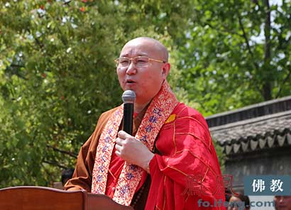 江苏省佛教协会副秘书长、宝华山隆昌律寺方丈上心下平大和尚出席开幕式(图片来源:凤凰佛教)