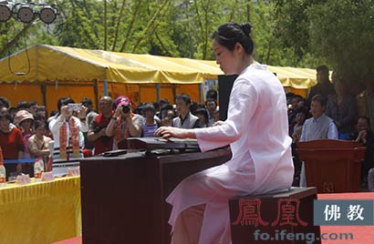 上海的著名古琴演奏家高宇为大家演奏古琴曲《普庵咒》(图片来源:凤凰佛教)