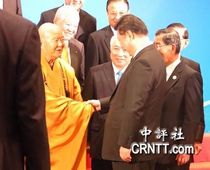 2015年3月28日,博鳌亚洲论坛,习近平主席与星云大师握手致意。(图片来源:中评社 摄影:彭媁琳)