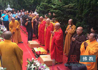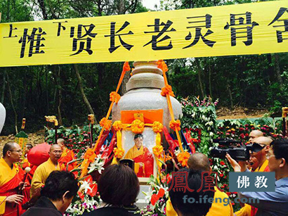 凤凰佛教讯2015年5月27日上午,浙江慈溪伏龙禅寺内清风阵阵,鲜花丛丛,梵呗声声,在一代大德惟贤长老诞辰95年之际,长老舍利灵骨入塔法会在此隆重举行,同日举办了“惟贤长老莲花精神与人间佛教思想研讨会”。
