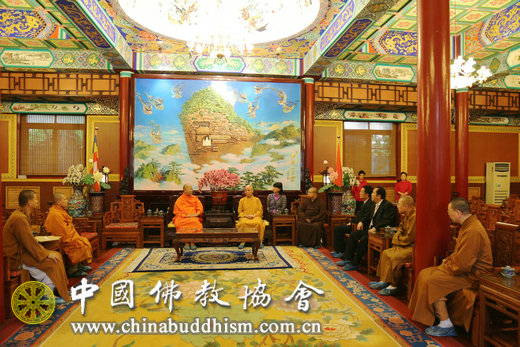 中国佛教协会副会长、北京广济寺方丈演觉法师在怀远堂会见沙威法师一行