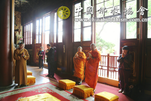 沙威法师一行在广济寺大雄宝殿内诵经礼佛