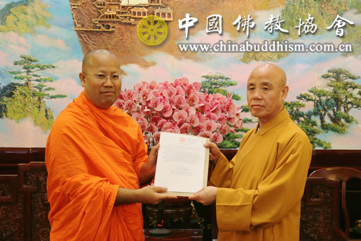 沙威法师转交朱拉隆功大学校长梵智长老致中佛协九代会圆满召开的贺信