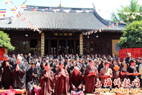2015年5月21日,农历四月初四文殊菩萨圣诞,上海龙华古寺隆重举行2015年三皈五戒授受法会。"诸恶莫作,众善奉行,自净其意",是佛教的基本教义。佛教不承认救世主的存在,确认因果报应。慈悲为怀,普度众生,是佛教的基本特征。