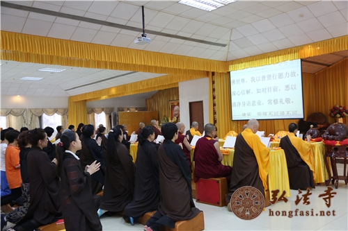 法师们及广大信众恭敬诵读《普贤行愿品》