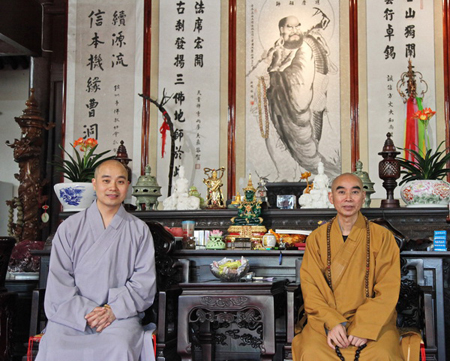 随后,宗性法师在丈室与诚信法师进行了亲切的交流。在听取了诚信法师关于寺院发展情况介绍后,宗性法师说天童寺作为曹洞宗祖庭道场,为弘扬禅宗文化作出了积极的贡献,同时推动了中国与其它国家的佛教文化交流,促进了中国佛教事业的发展。宗性法师还特别强调了,中国佛教事业的发展,得到了老一辈佛教高僧的鼎力支持,同时勉励年轻的法师要向老一辈高僧学习,以庙为家,舍身为寺,行持戒律,弘扬正法,无私奉献,把全身心投入到佛教事业中去。