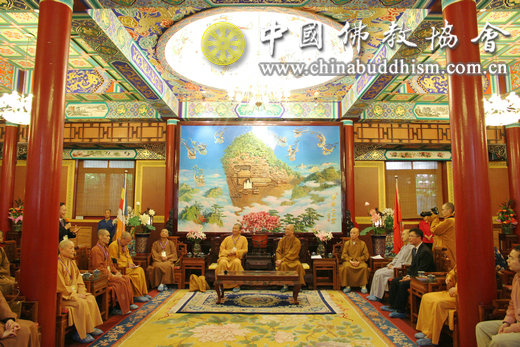 代表团一行首先在刘威秘书长的陪同下参观了广济寺,随后学诚会长在广济寺怀远堂亲切会见了代表团一行,双方进行了座谈交流。