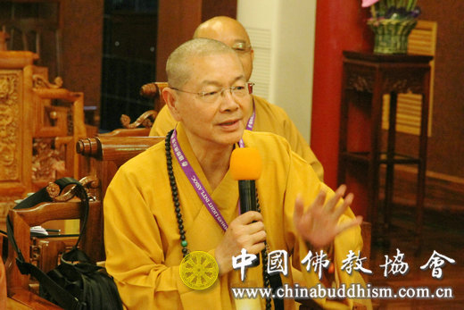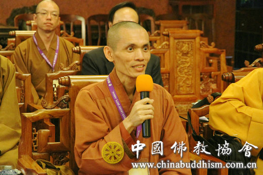 座谈期间,台湾佛光山寺常务副住持慧传法师、中华国际供佛斋僧功德会主席净耀法师、福智佛教基金会董事长如证法师和世界佛教徒友谊会副会长黄书玮先生相继发言,纷纷表示两岸佛教法乳一脉、同根同源,两岸佛教界应同心协力推动中国佛教走出去,把佛教文化推向国际舞台。