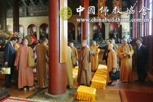 会见开始前,台湾中华人间佛教联合总会一行参观北京广济寺