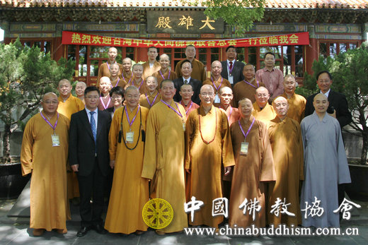 2015年5月19日上午,台湾中华人间佛教联合总会代表团一行22人来到北京广济寺,拜访中国佛教协会,受到中国佛教协会学诚会长、演觉副会长、宗性副会长和刘威秘书长的热情接待。