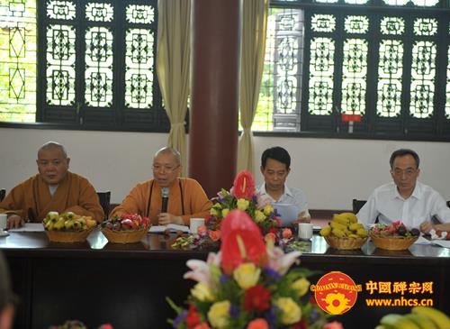 18日下午,江苏省宗教事务局顾传勇副局长率调研组一行九人赴南华禅寺就加强宗教院校建设等有关工作进行调研。中国佛协副会长、江苏省佛教协会会长心澄大和尚,江苏省佛教协会副会长兼秘书长秋爽大和尚,江苏省佛教协会副会长大初法师等参与调研。韶关市民族宗教局局长赵卫东,广东省佛教协会常务副会长、韶关市佛教协会会长、南华禅寺方丈传正大和尚,南华禅寺监院法祇法师,曹溪佛学院教务长传源法师、教导长观法法师等陪同调研。