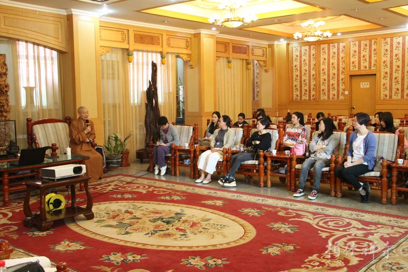 15日上午,来访师生与明海法师在指月楼会客厅见面。在观看了陈宇廷先生《觉性科学的次第与应用》的演讲视频之后,明海法师介绍了觉性科学的产生背景及其在西方社会的应用,并对觉性科学与佛教修证的异同进行了开示,最后明海法师针对大家提出的如何减压,如何开发觉性,如何平衡内外等问题予以精彩解答。16日晚,常照法师与来访师生进行座谈。法师除了讲解一些基本的佛教教义,还就师生们所关心的子女教育问题、与父母的关系问题等作了入情入理的回答。