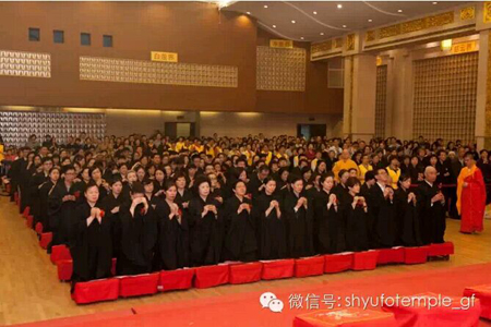 2015年5月21日,农历四月初四,文殊菩萨圣诞日。上海玉佛禅寺于晚上6时举行燃灯祈慧法会,千余名护法檀越来到万佛堂随喜参加了法会。